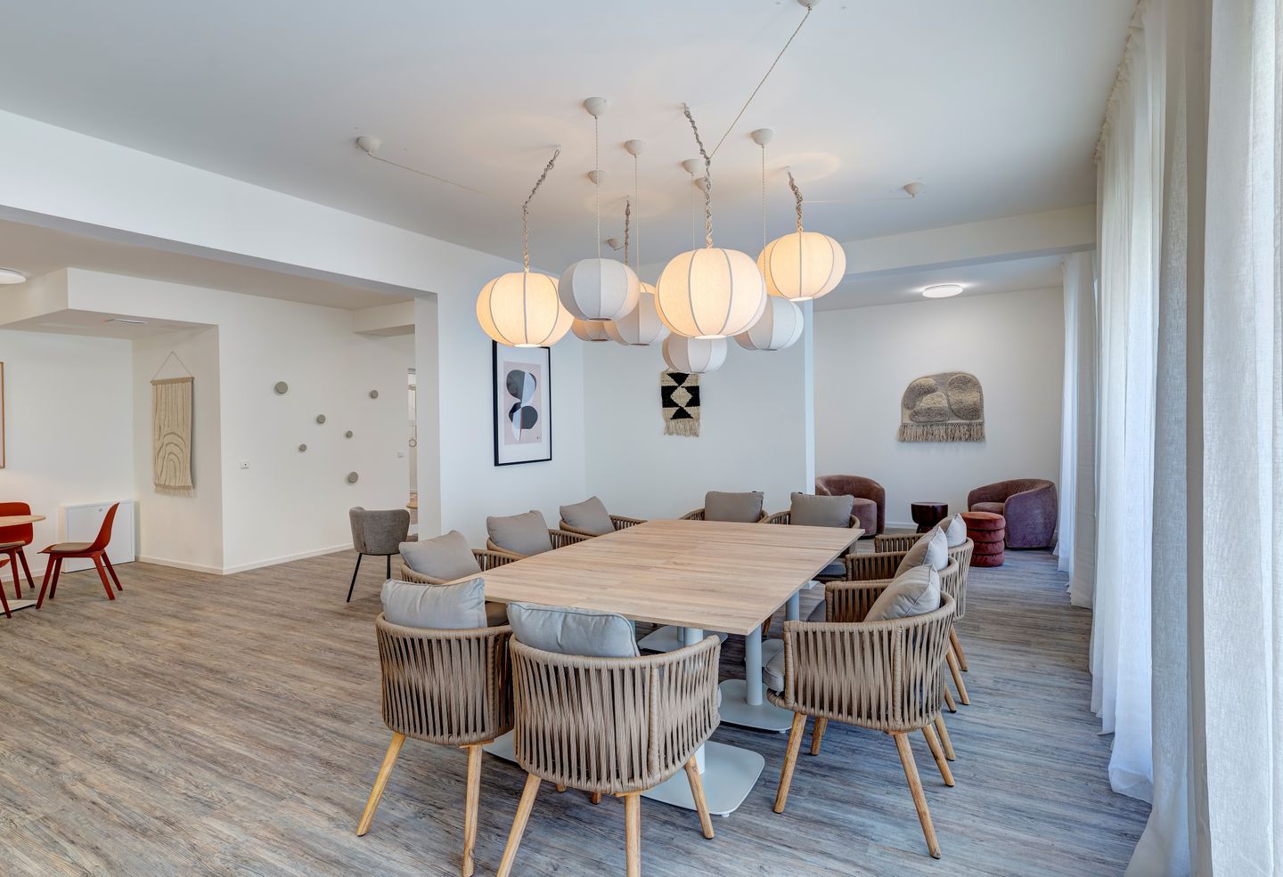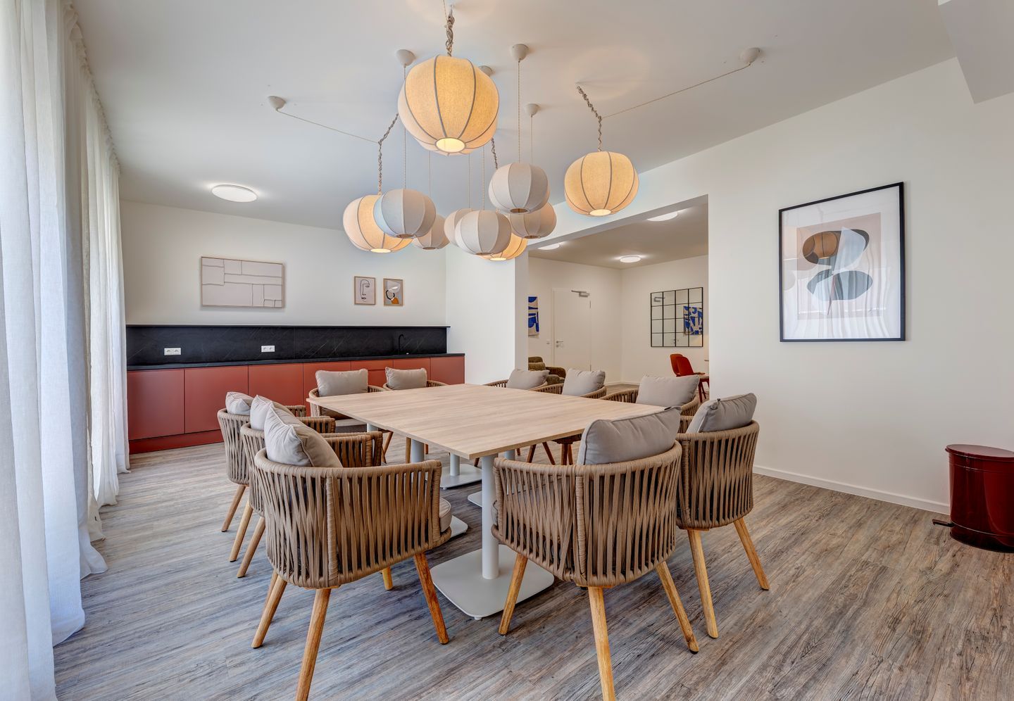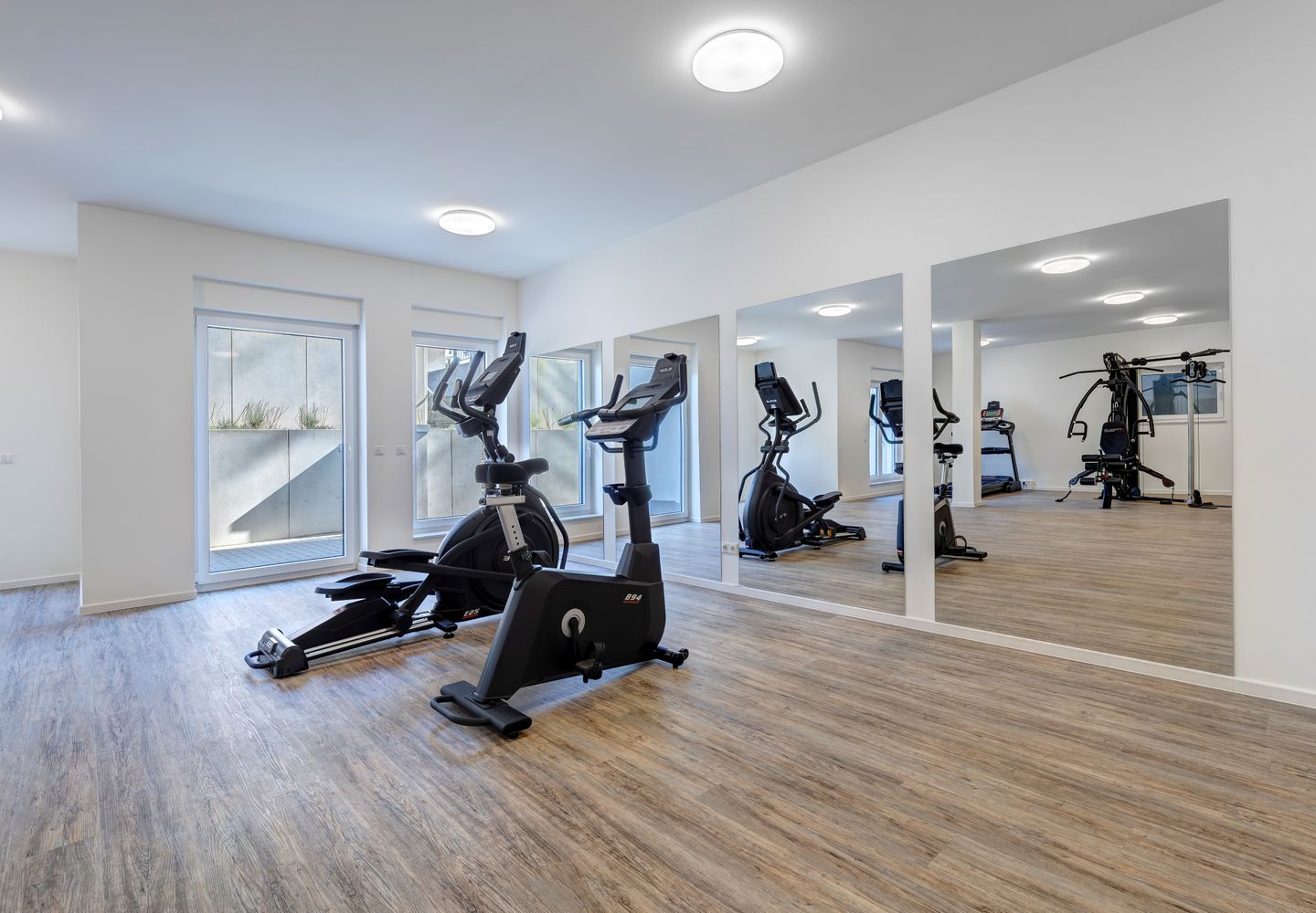 Die helle, modern gestaltete Wohnung verfügt über alle Vorteile des modernen Bauwesens: Fußbodenheizung und bodengleiche Duschen, bodentiefe Fenster und einen weitläufigen Balkon. Saunen und Fitnessräume stehen zur Verfügung. Die voll ausgestattete Küche mit Herd und Spülmaschine, ermöglicht einen gemütlichen Abend mit Familie oder Freunden. Der großzügige Balkon lädt zum Sternegucken unter freiem Himmel ein.
